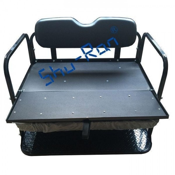 Czarny zestaw tylnych siedzeń składanych z aluminiową platformą ładunkową w romby do wózków golfowych EZGO RXV 2008 i nowszych - Fabrycznie nowy, bardzo wytrzymały, wysokiej jakości, nie blaknący.